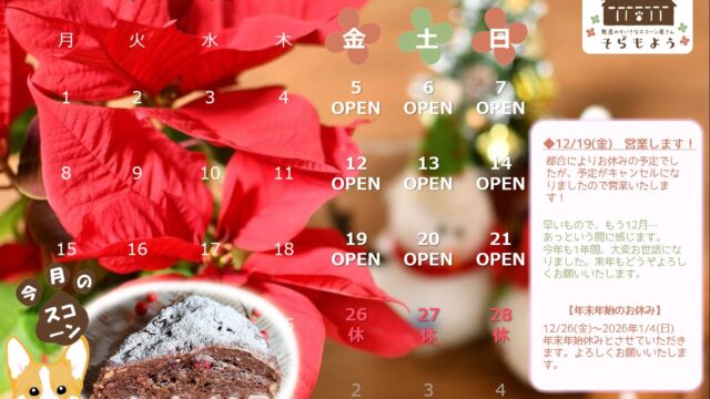 都合によりお休みの予定でしたが、予定がキャンセルになりましたので営業いたします。(12/16更新) - 【年末年始のお休み】
