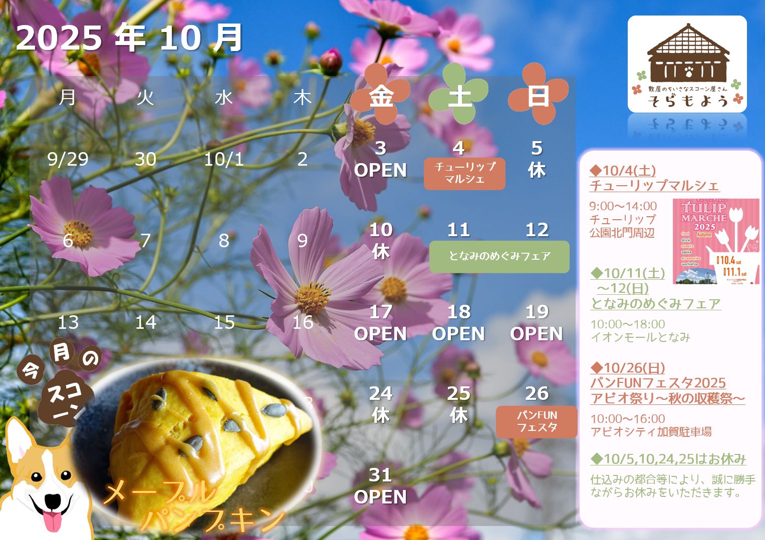 ⇒10/5(日)は、予定の地区イベントが中止となりましたので通常営業いたします!(10/4更新)