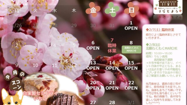 【2/7(土)臨時休業都合により、臨時休業とさせていただきます。2/8(日)北陸わくわくMARCHE時間)10:00~1...
